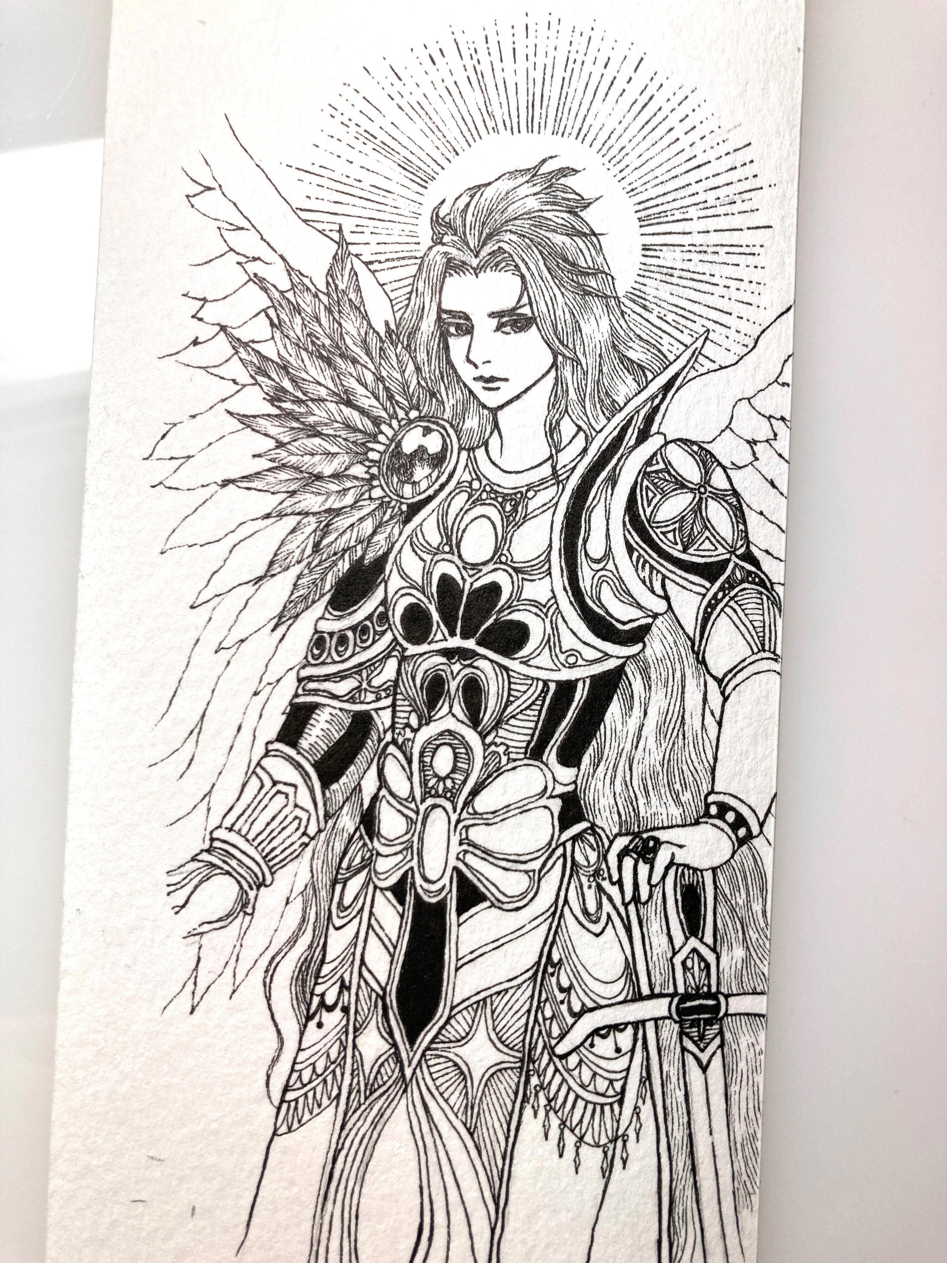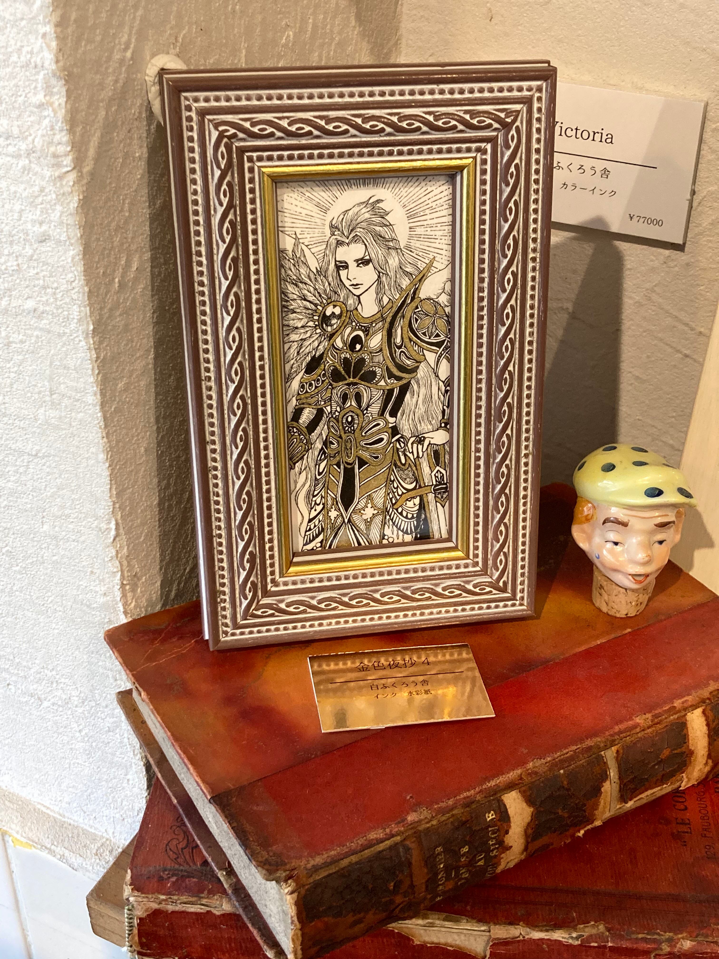 墨と金の着彩が施された、繊細で美しい手描きドローイング。美しく小さな額縁に入ったアート作品です。緻密な描写と独自の世界観を身近でお楽しみいただけます。